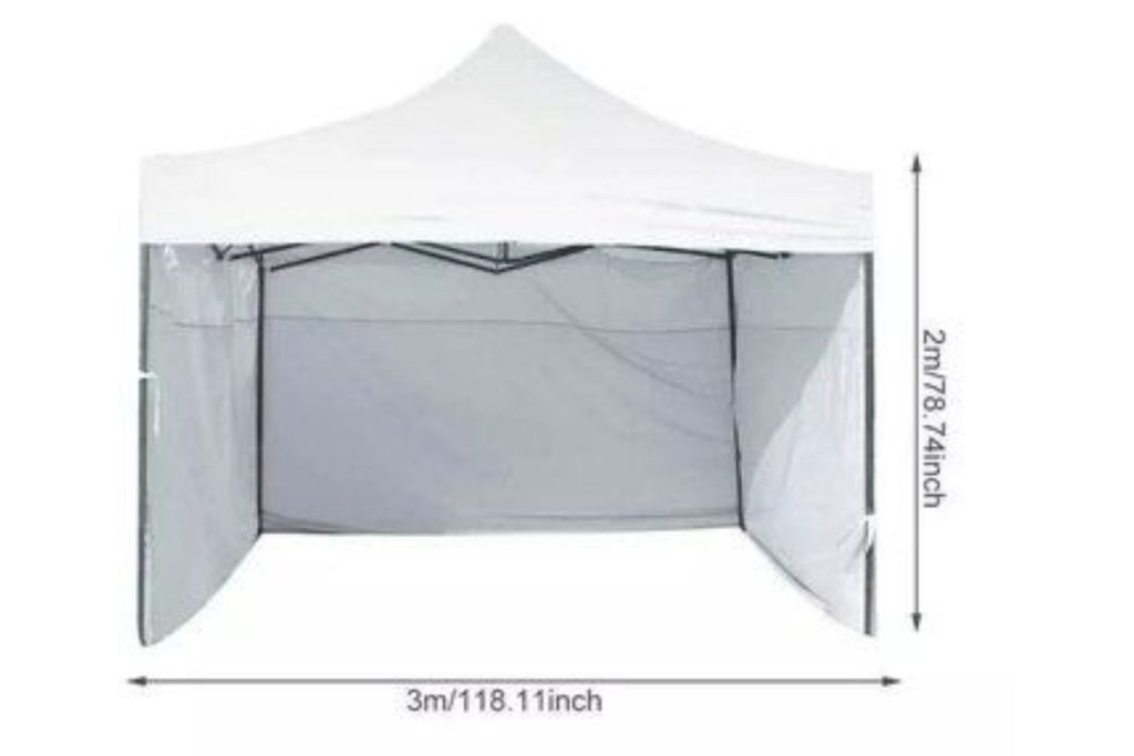 ESTRUCTURA CUADRADA DE 2,4 METROS DE ALTURA. ES TIPO PLEGABLE COMO ACORDEÓN. SUS PATAS TELESCÓPICAS PERMITEN DISTINTOS NIVELES DE ALTURA. POSEE UNA LONA IMPERMEABLE Y RESISTENTE AL SOL.